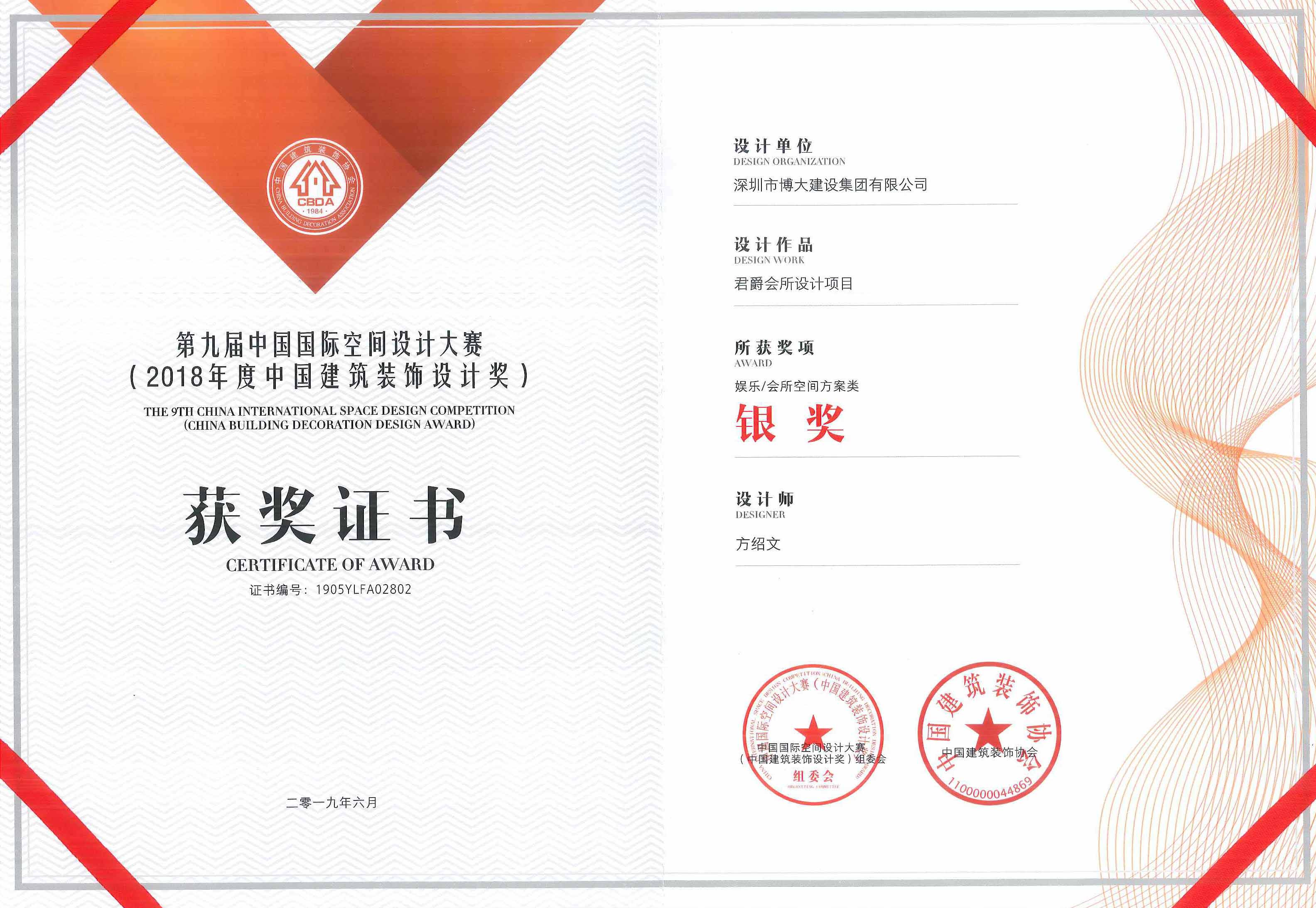 2021年度中國建筑裝飾行業(yè)百強裝飾類第二名