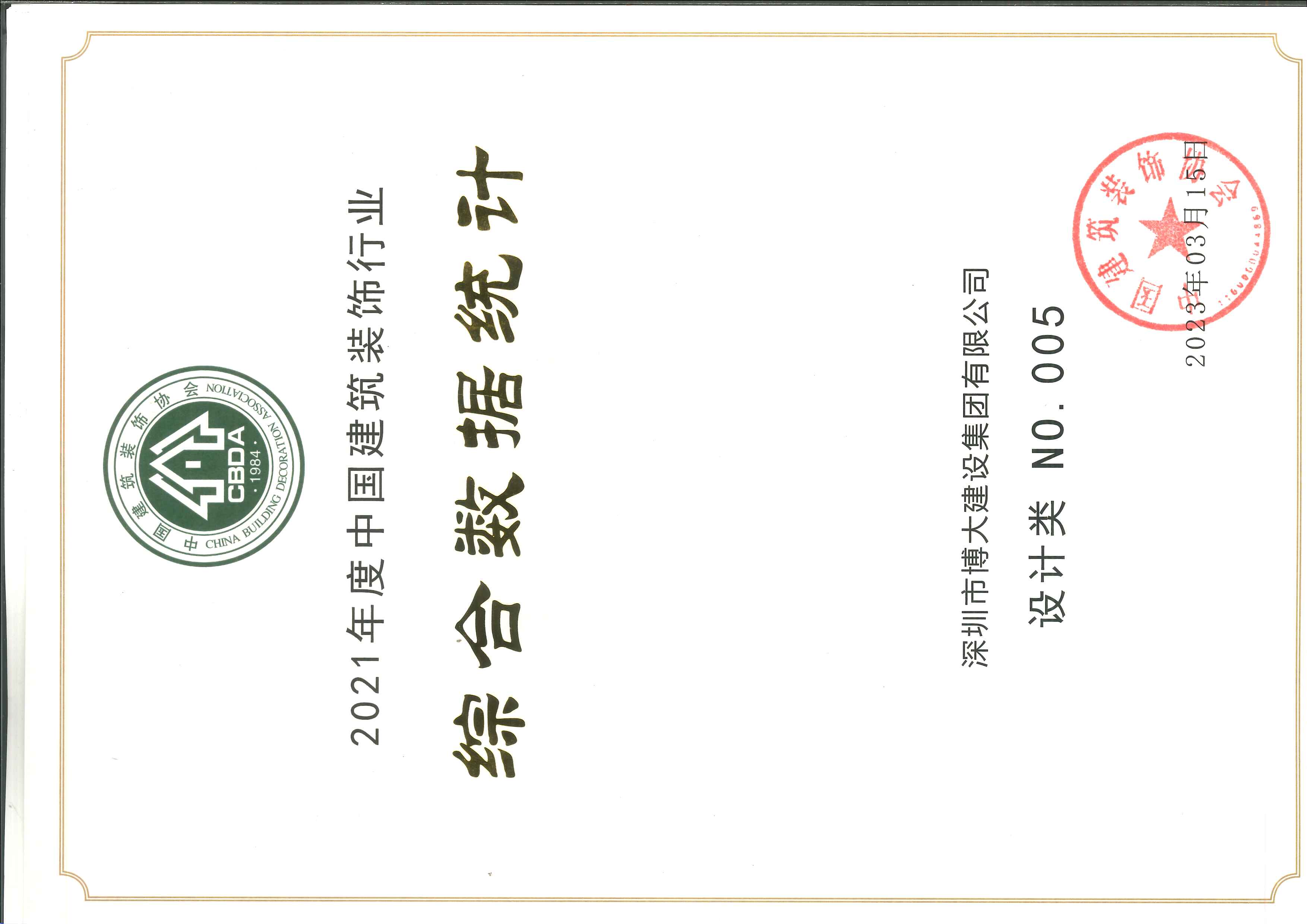 2021年度中國建筑裝飾行業(yè)百強設計類第五名