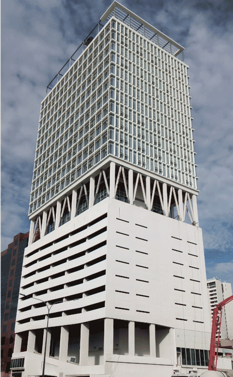 項(xiàng)目位于巴布亞新幾內(nèi)亞首都莫爾茲比港TOWN區(qū)CBD核心地段,總占地面積1808平方米,規(guī)劃總建筑面積2.9萬(wàn)平方米,是“南太平洋第一高樓”。博大施工范圍包括但不限于幕墻工程、遮陽(yáng)板系統(tǒng)、幕墻本身的防雷接地裝置、幕墻龍骨、幕墻封邊封頂?shù)取?