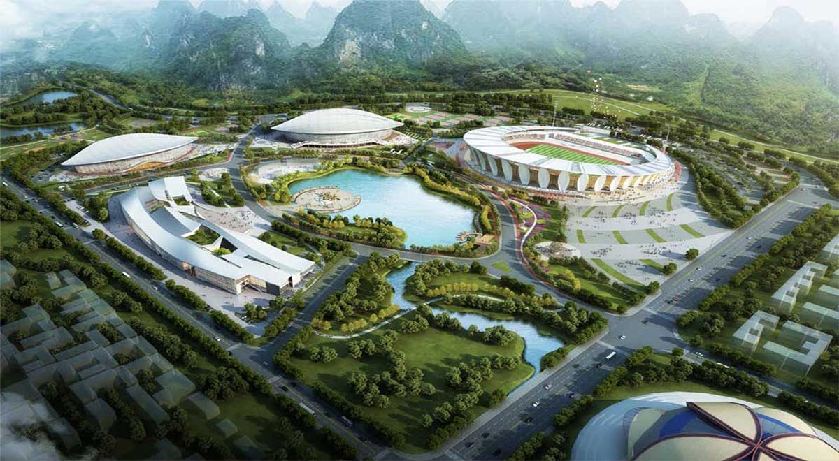 項目位于廣西壯族自治區靖西市,公園主要建設內容有文化三館、健身館、游泳館、體育館等。博大此次中標的是文化三館和健身館幕墻工程。