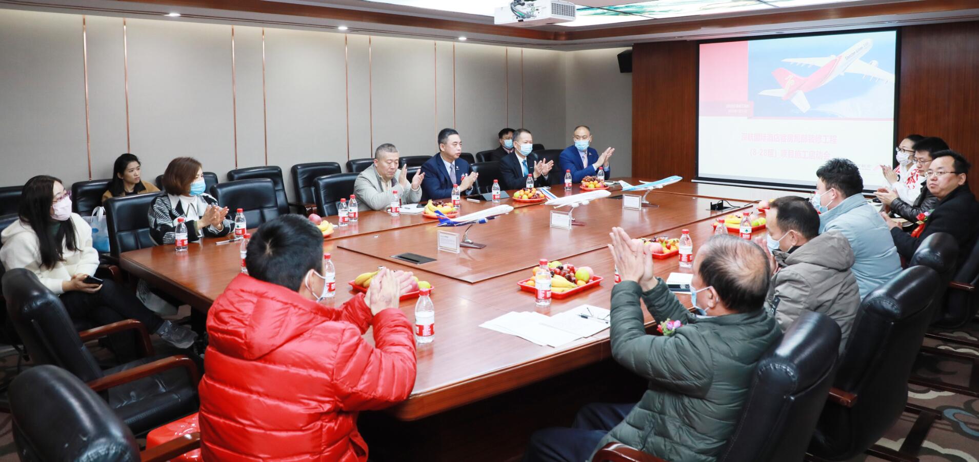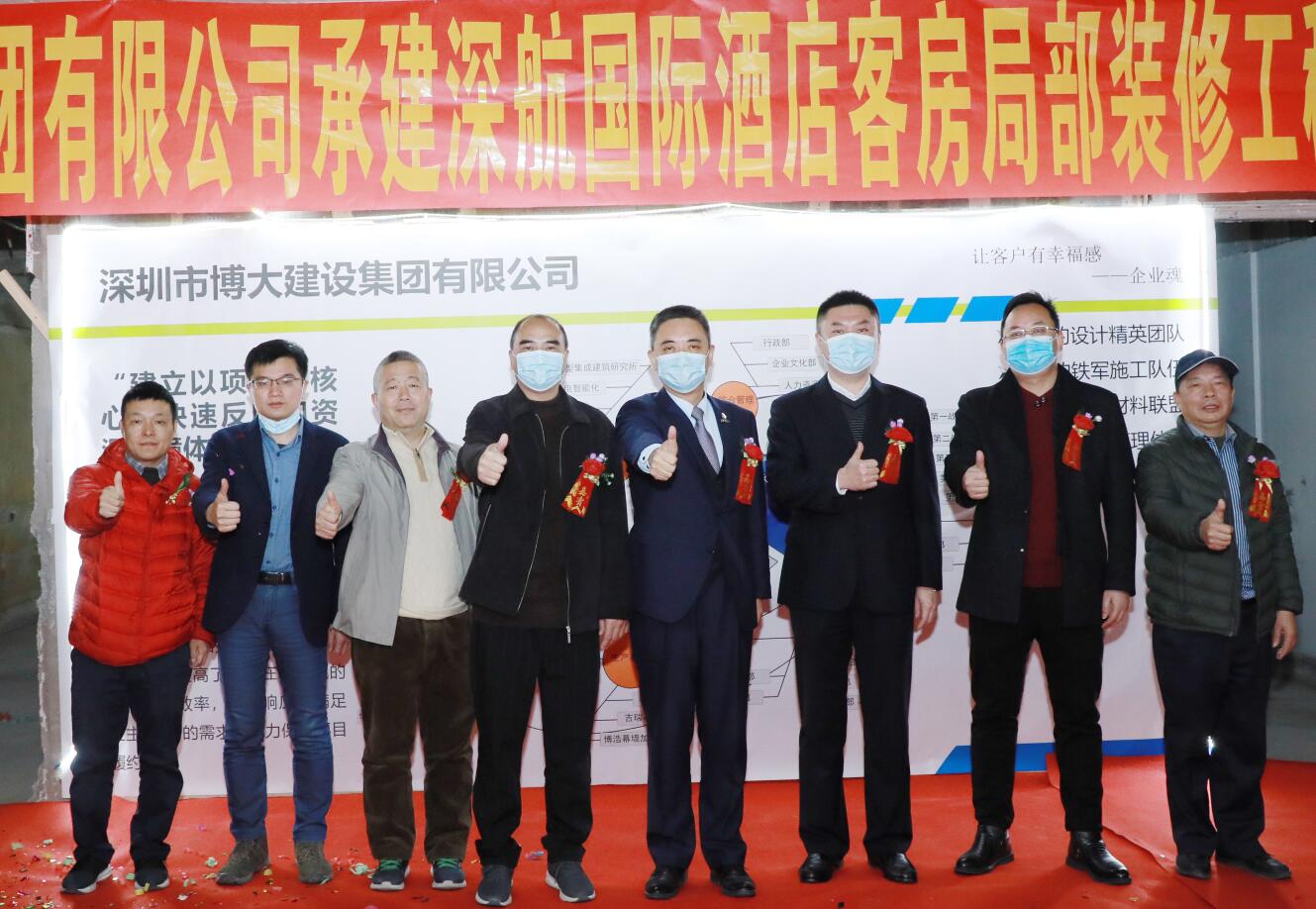 2021年1月14日,在開完深航國際酒店客房局部裝修工程第一次工地會議后,集團(tuán)副董事長黃河、第三戰(zhàn)區(qū)總經(jīng)理徐朝華與深航基建處副總經(jīng)理陳新、深航基建處工程管理中心譚波、深航酒店副總經(jīng)理肖強(qiáng)、深圳市中安項目管理有限公司總經(jīng)理趙坤強(qiáng)等一行領(lǐng)導(dǎo)參加了深航國際酒店開工典禮剪彩儀式。