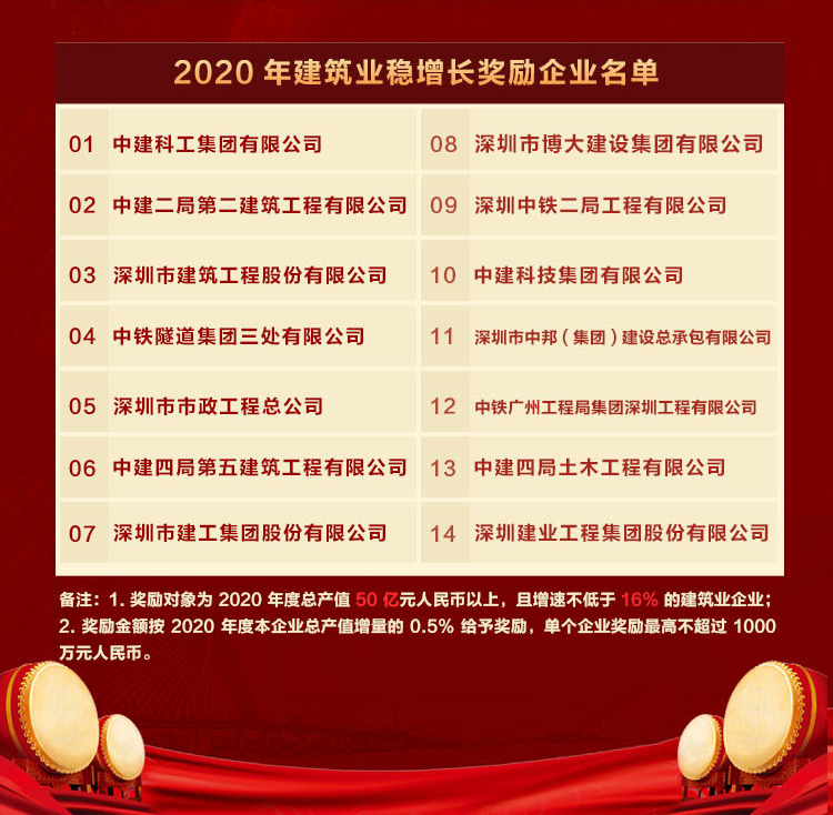 行業唯一 | 博大榮獲深圳市政府2020年建筑業穩增長獎勵