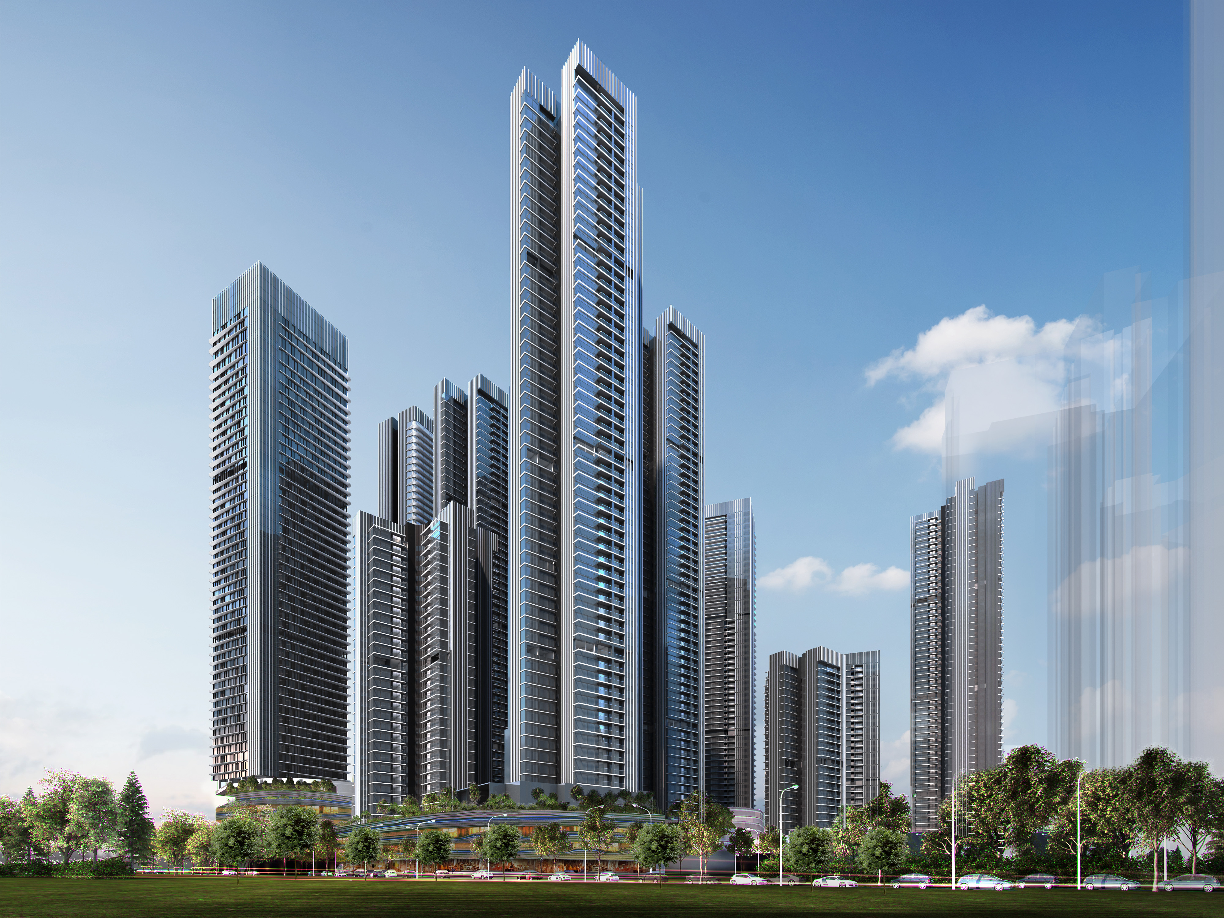 項目位于深圳市羅湖區愛國路與華麗路交匯處西南角,占地面積約6.4萬㎡,總建筑面積約69.2萬㎡。博大累計中標了共計10棟超過200m的超高層幕墻,創造同一項目超高層幕墻數量的新紀錄。主要幕墻系統為框架式玻璃幕墻、金屬板幕墻、采光頂、玻璃欄桿及鋁合金格柵系統等。