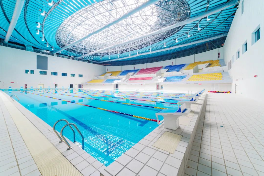 博大負(fù)責(zé)的施工區(qū)域涵蓋體育館、運動場、游泳館、人防地下室,聲學(xué)吸音等全部裝飾工程。其中運動場東、西看臺兩側(cè)均為弧形造型,現(xiàn)場工期緊、任務(wù)重,交叉作業(yè)多,協(xié)調(diào)難度大,配合要求高。
