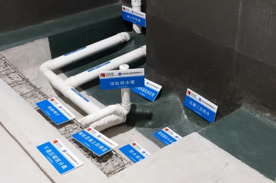 項目部除嚴格管控材料質(zhì)量外,也嚴格把控過程施工質(zhì)量,從基層彈線、龍骨排版、線管施工、艾特板安裝、夾板施工、防水施工等基層施工,每一道工序都嚴格按照標準、技術(shù)要求、工法樣板進行施工。